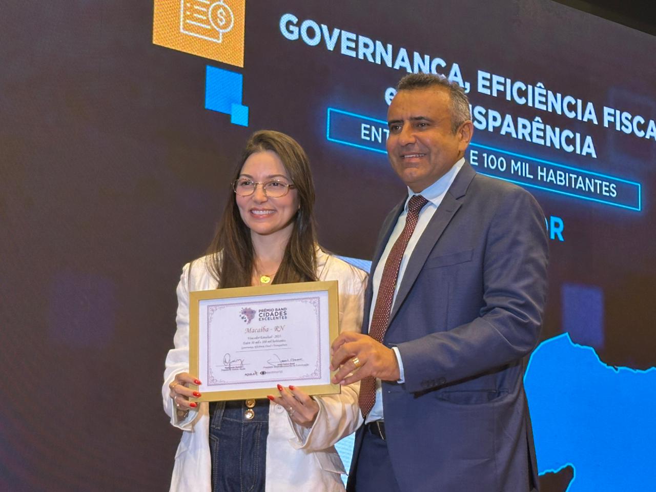 A Prefeitura de Macaíba recebeu, pelo quinto ano consecutivo, reconhecimento no prêmio Band Cidades Excelentes, a maior premiação dos municípios brasileiros. A terra de Auta de Souza conquistou o primeiro lugar no pilar “Governança, Eficiência e Transparência”, na categoria cidades até 100 mil habitantes.