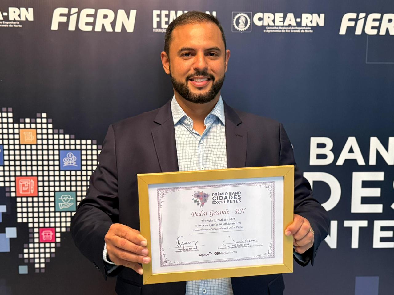 O município de Pedra Grande, administrado pelo prefeito Pedro Henrique (PSDB), foi o grande vencedor do Prêmio Band Cidades Excelentes 2025 na categoria “Desenvolvimento Socioeconômico e Ordem Pública” entre os municípios com até 30 mil habitantes.